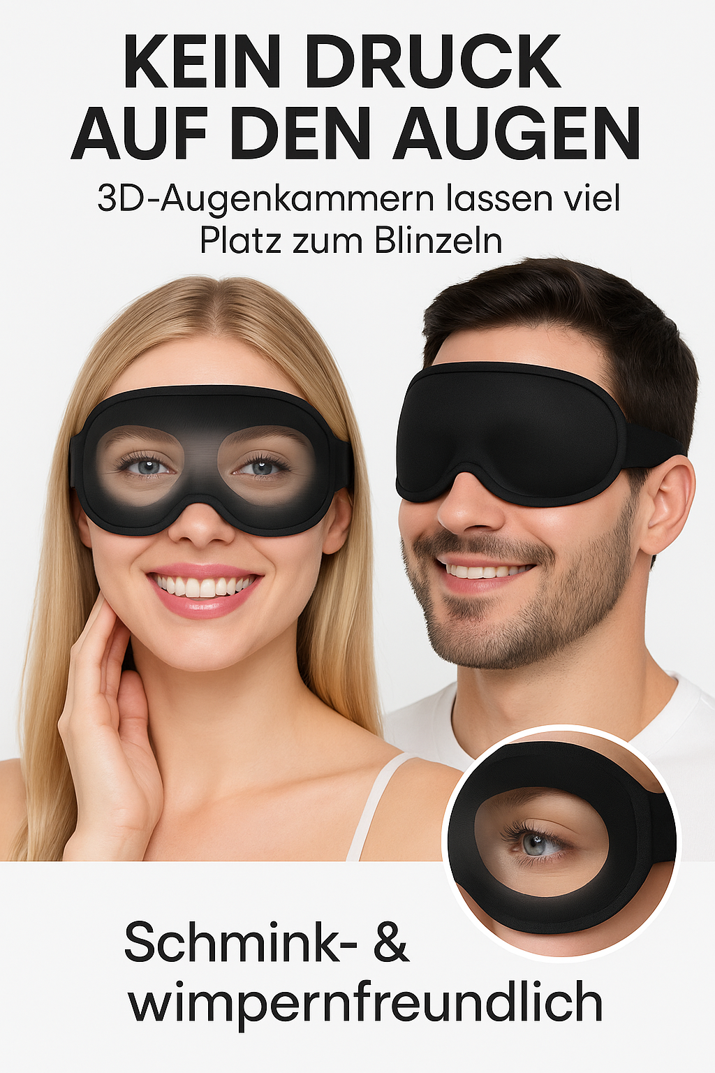 Normale Masken liegen direkt auf den Augen, lassen Licht seitlich herein, zerstören bei Frauen die Wimpern Extensions und drücken – besonders beim Blinzeln oder in Seitenlage.